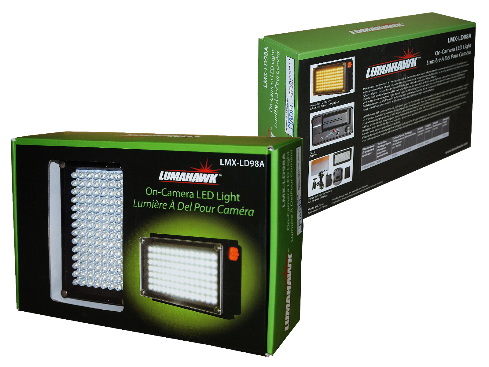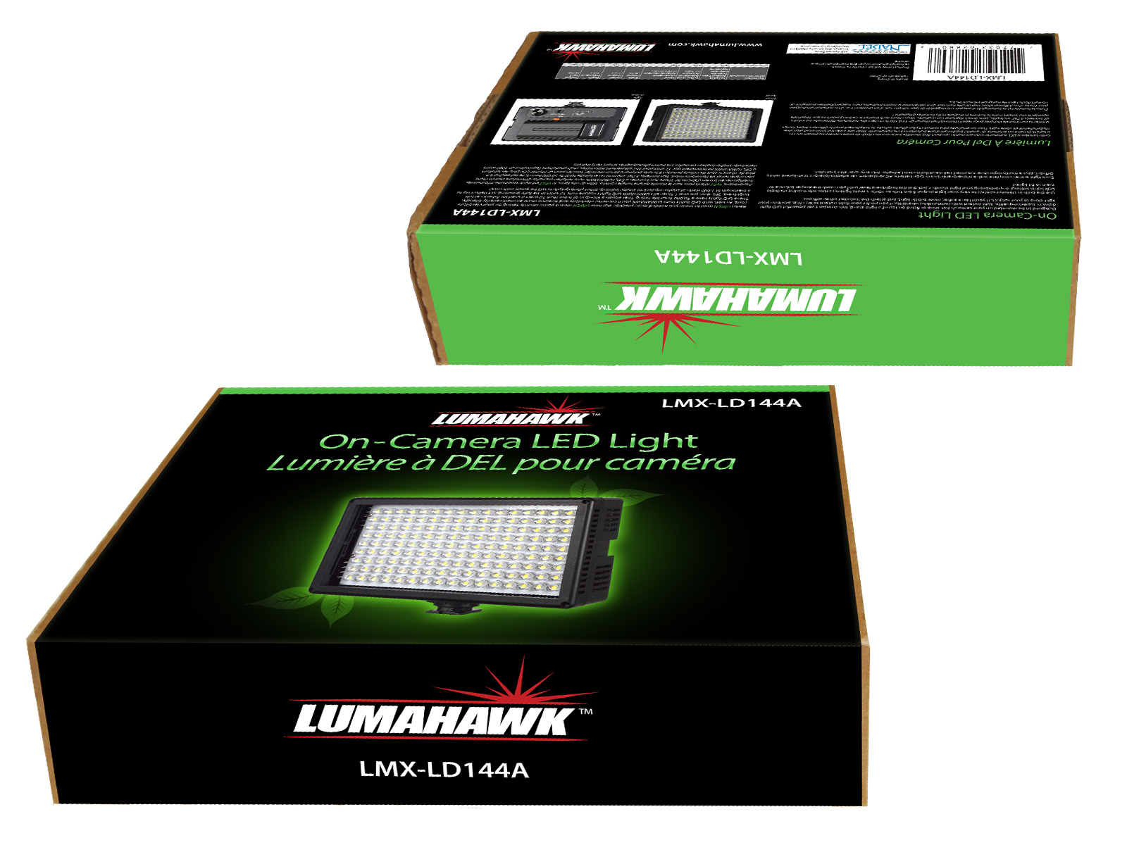 Packaging for line of prosumer photo LED lights. Because the manufacturer supplied the products in different types of boxes, I developed a style guide that determined the placement and relative size of all the visual elements and text to be included, regardless of the package style.