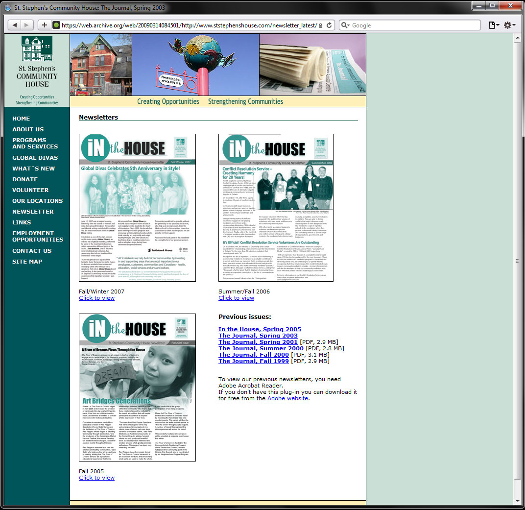 ststephenshouse.com is the website of St. Stephen's Community House, a public service organization in Toronto's downtown core. The site provides information on services offered, contact information for various departments, donation opportunities and a newsletter archive. On the backend, the site features a CMS that enables the organization's staff to make page updates themselves.