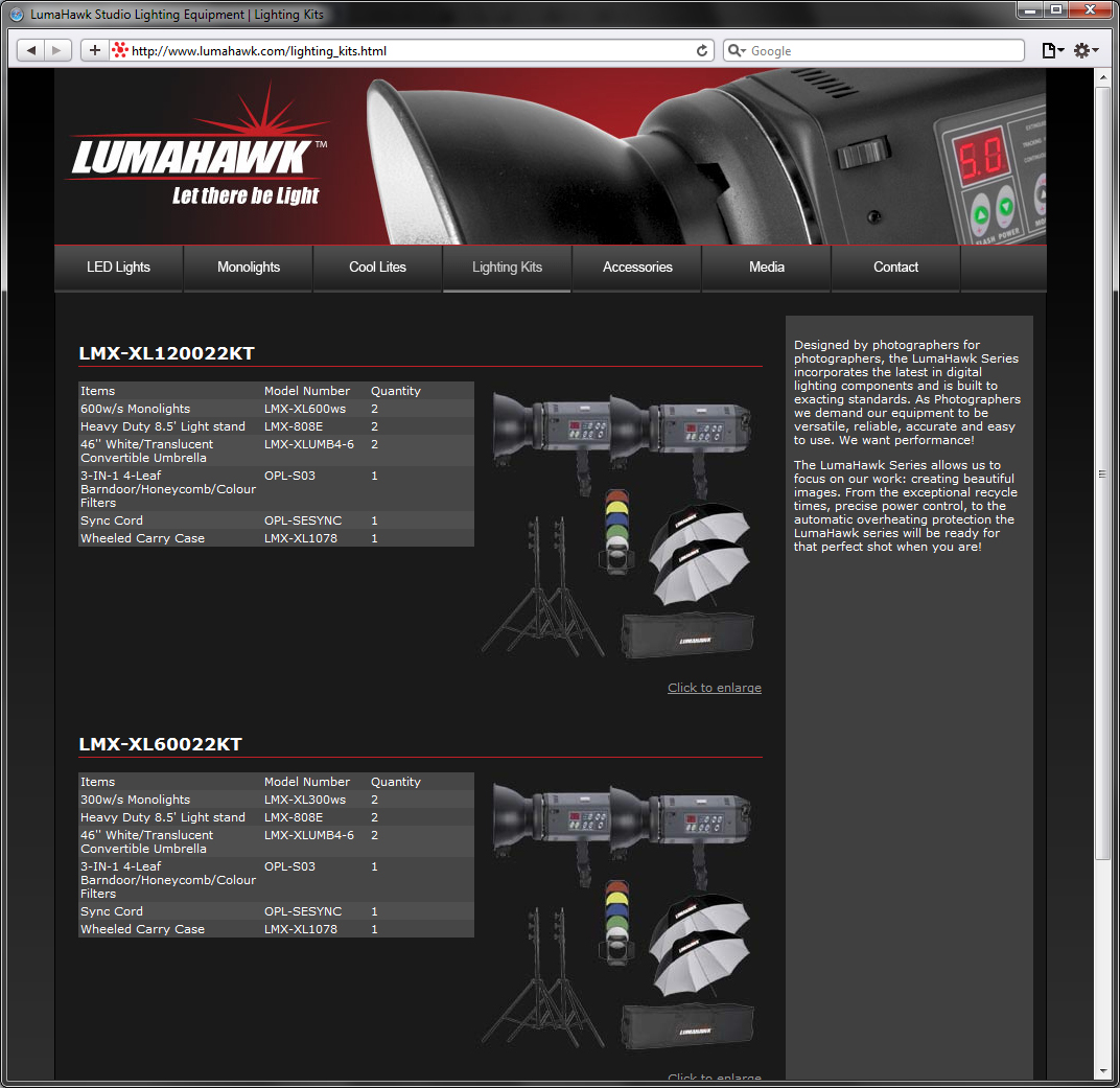 lumahawk.com is the current website for a brand of photo accessories and lighting equipment.